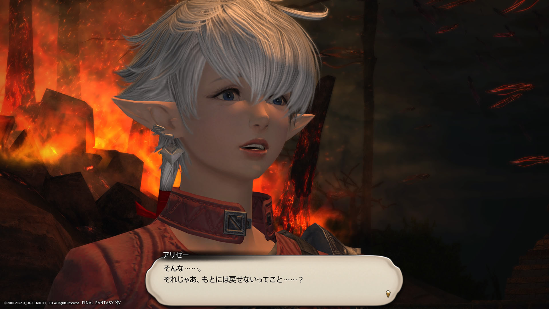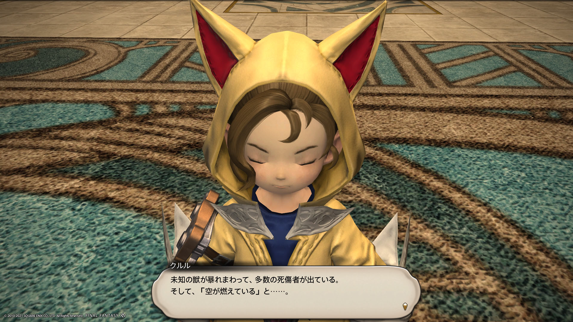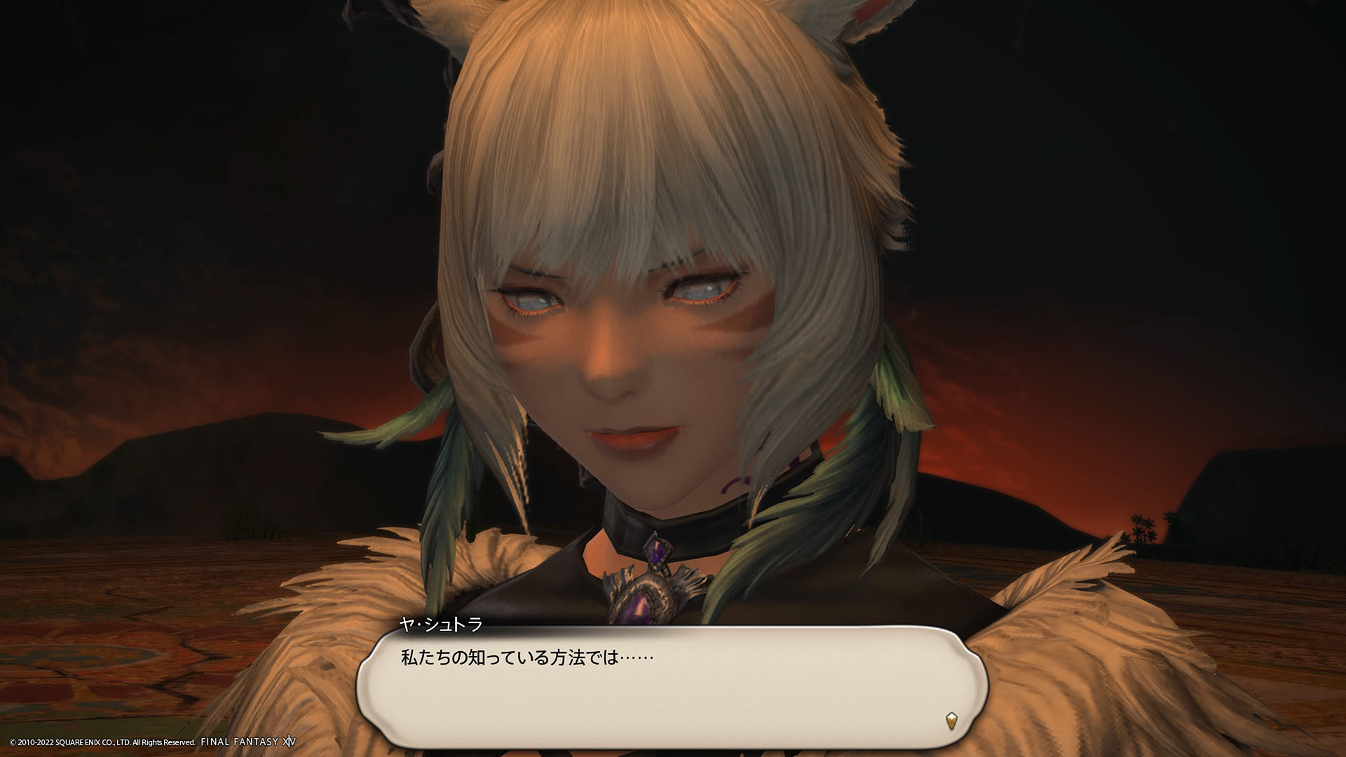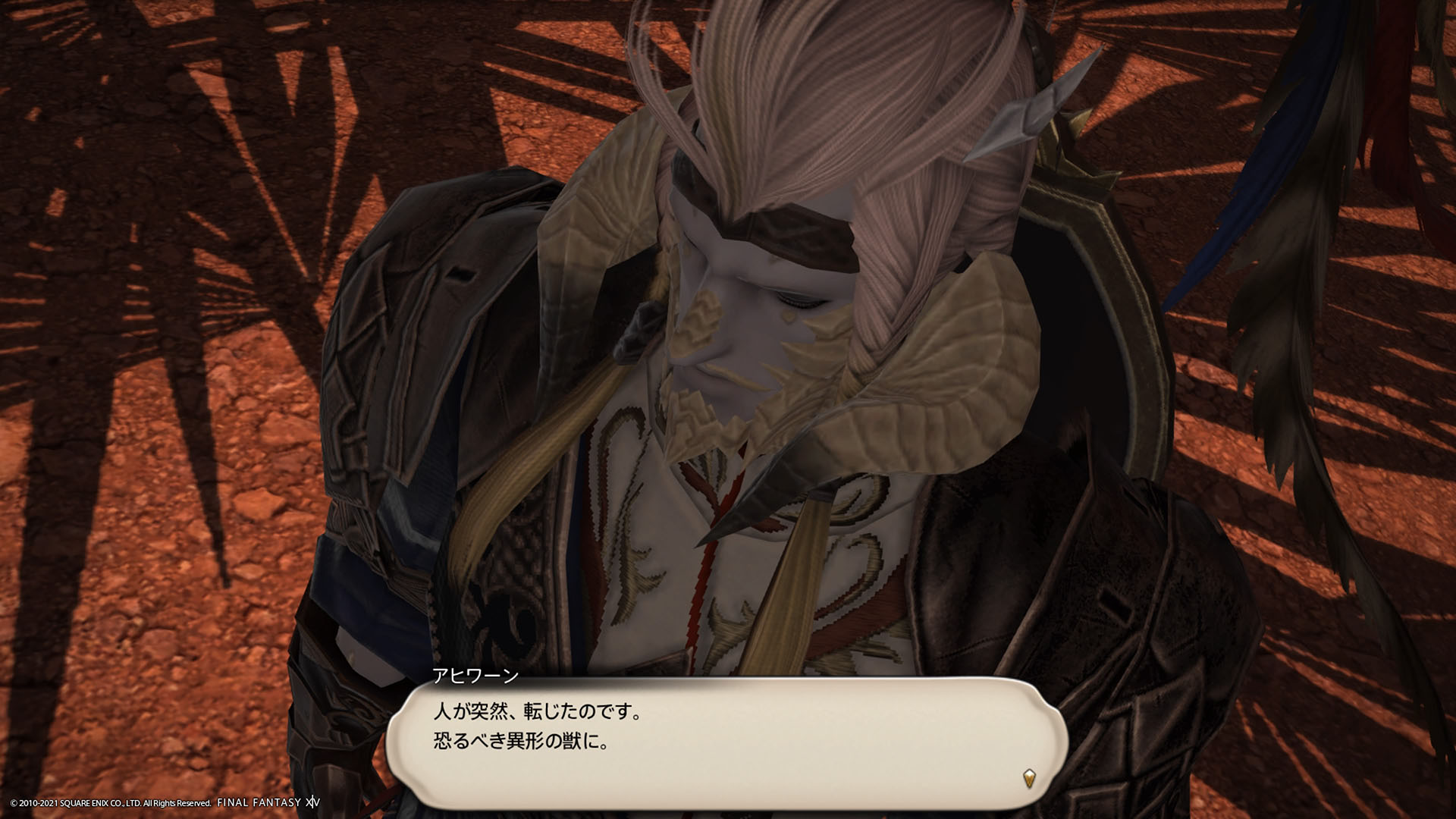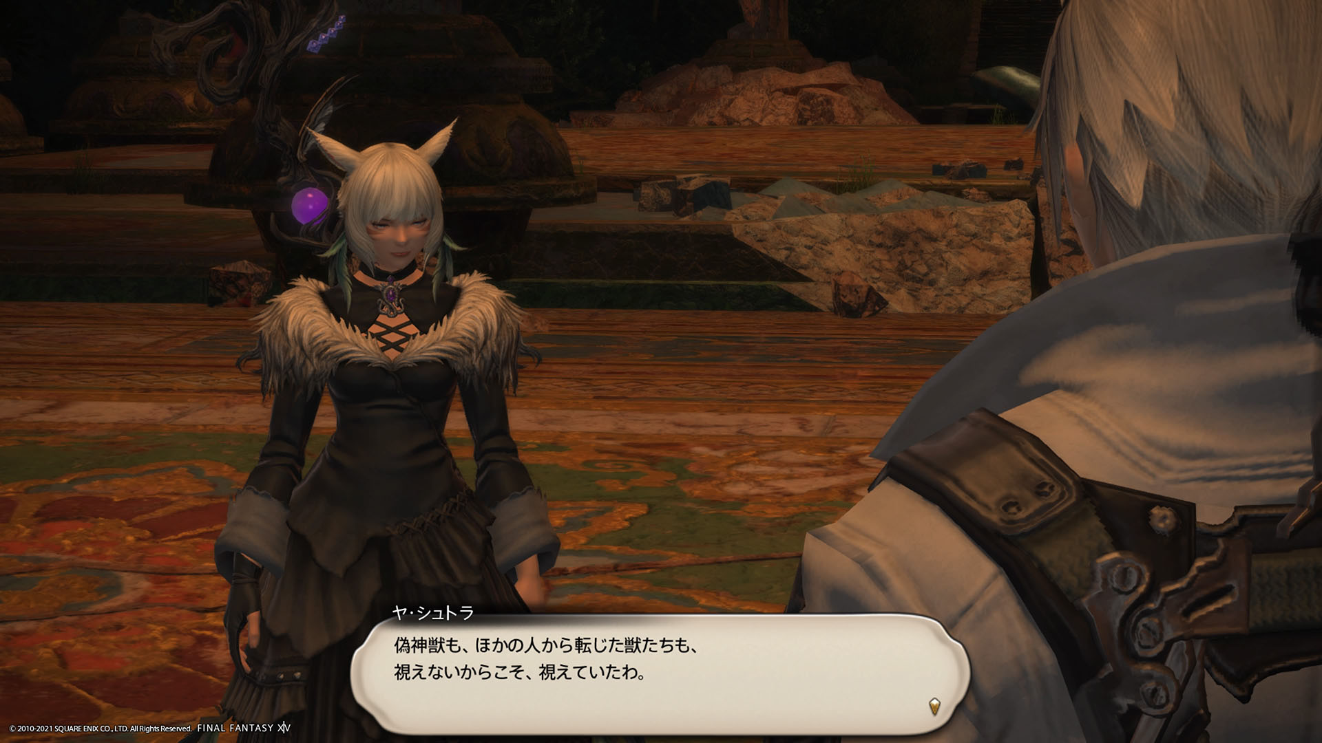 サイモン暁月の成長日記429※本編ネタバレあり サイモン成長日記シリーズ 2022年10月11日 寒い!なんか急に寒くなりましたね! 寒いのは苦手なんだが、さつまいもとか鍋とか美味しいものも増えるので悩ましい。 あれだな、焚火で美味い芋焼きたいよね! だからと言って空は燃えなくて良いんですけどね! ふ~む、空が燃えるとはどういうことなんでしょうな。 わ~!お外が真っ赤よお母さん! すご~い!流れ星まで降ってる~! これが世紀末?しゅご~い… なんかそれっぽいの来ましたね。 いちをさらっとは聞いたけど、なんのことやらパッパラパーですので。 そもそも昨夜来訪者多すぎて寝不足なんで。 なんだが怪談でも聞かされてる心地。 そう…それは、人だったのです!!<〇><〇>カッ!! みたいな。 ミッションとターゲットネームは大事だよな! そんなしょーもないことに関心するサイモンであった。 あ、そういえばそうだな。 流石に自宅待機、ヴリソックはしてないと思うが。 わ~、身軽~。 それフラグですやん…。 あとヴリちゃんのフラグ回収もね! 確かに密林だもんな、偽神獣以外の生き物もいるよな。 おんもにはモンスターしかいないって思い込んでたわ、ありがとう。 もちろんサイモンもバッチリだぞ! でもその前にちょっと採取しますね。 これぞ世紀末、いや終末園芸!! そうだね、なんでだろうね。 古代人≠獣=人 実に面白い! スパゲティみたいな名前だな。 はーい、ヴリちゃん入口で確保ー!! アヒワーンさん、やっぱりダメだったようです。 キモ クラゲみたいのがいっぱい飛んでる。 塩辛に見えなくもなかったわ、ごめん。 でこいつがラザハンで目撃された奴だな。 中身は何かはだいたい察してますが、てかこれアーモロートにいたね。 ということは予習済みなわけで余裕だな! (同じ動きするとは限りませんが) え、ヤシュトラママさらに眼の具合悪くなってんの? 謎々ですか? やだー!なにそれ恐ーい! てか聞いてる感じだとそれ、星海に還れないんじゃないです? つまりアリゼーちゃんの豚も使えんのか。 ふーむ、困りましたねえ。 まあでも考えようによっては、とある宗教では解脱・涅槃という輪廻から外れることが 幸福と考えることもあるようですし。 結果オーライなのか? みんなでニルヴァーナしちゃう? あ、ヴリちゃんおかえり。 まあそう落ち込むなよ。 ギミックの判断ミスなんて珍しいことじゃないから。 アヒワーンも合流か、おつかれ。 言ってた通りヴリちゃん入口でオロオロしてたよ。 ぼくもそう思うにゃわん! なんでだよ!? いやいや、ラザハンに限ってそれはないと思うが。 なんなら「太守は七大天竜だー!カツル」ってテンションあがるだろ。 ヴリちゃんがそう言うならまあ、仕方がない。 でもこの状況だと遅かれ早かれ絶対バラすことになると思いますよ? え?ズルくない? サイモンもいちを竜騎士なんですけどねえ? ミドじいに乗ってる奴が言うなってか? いやでもあれ幻体じゃないですか、ノーカンだろ! 生ものでお願いしたい。 ズルイ… あとで(公開)イタ電してやる。 仕方がない、まあがんばってきなよ。 この間こき使っても良いって言ってたしな! (`・ω・´)キリッ! さて街は今頃どうなってんでしょうね。 PR