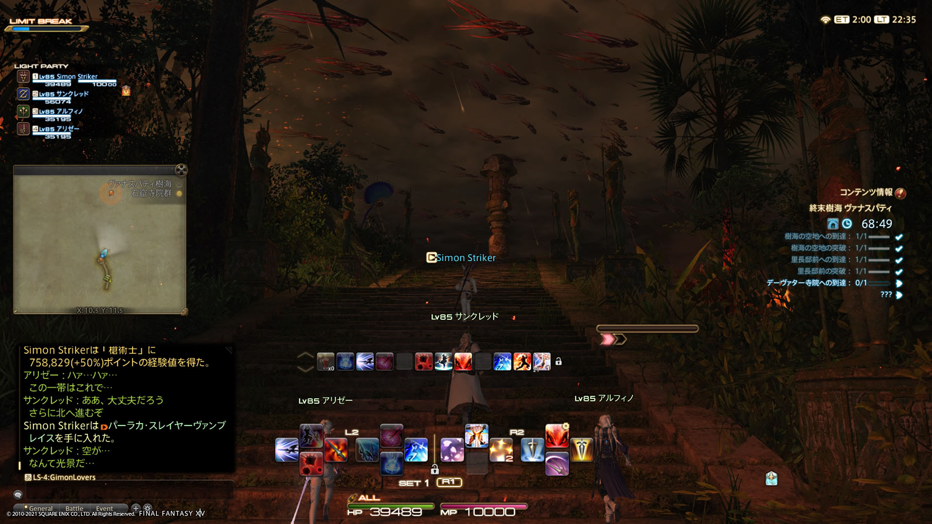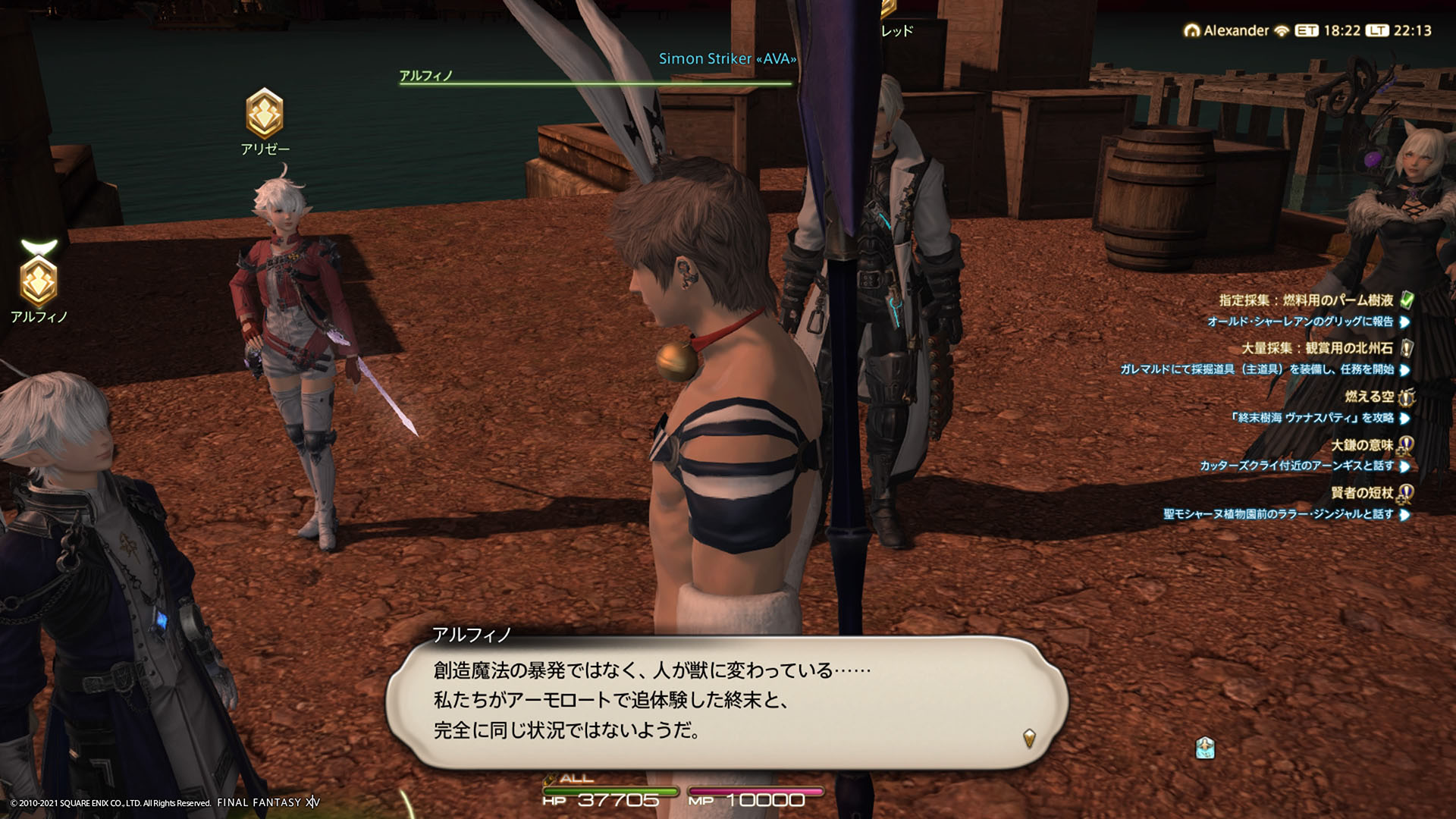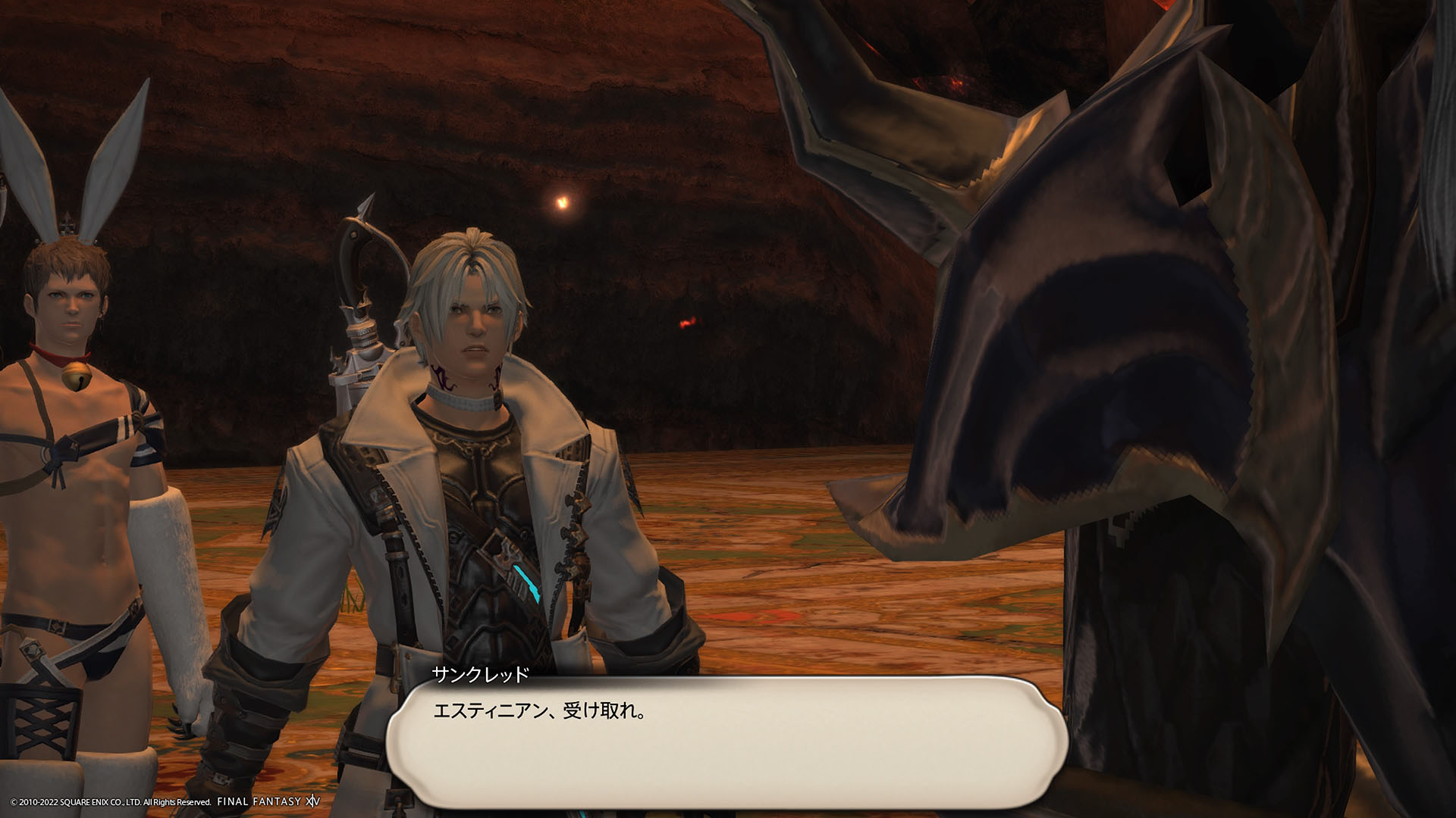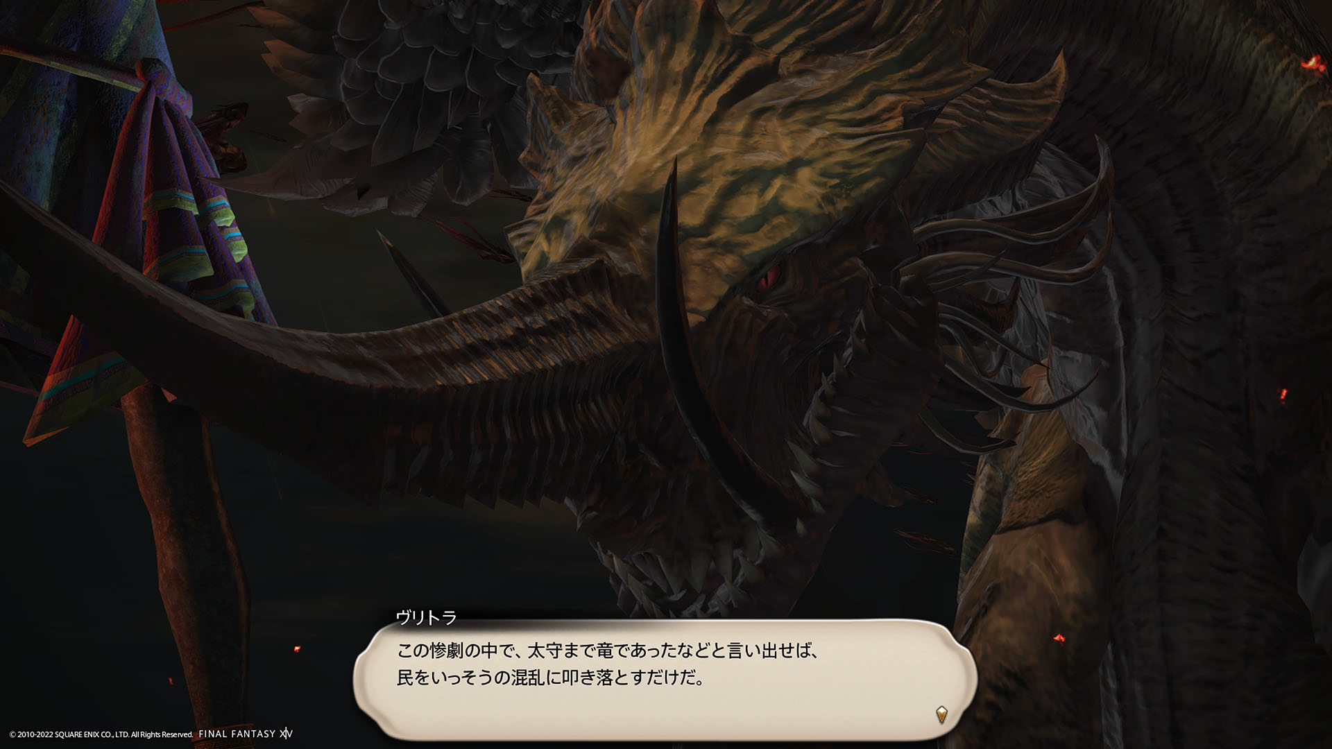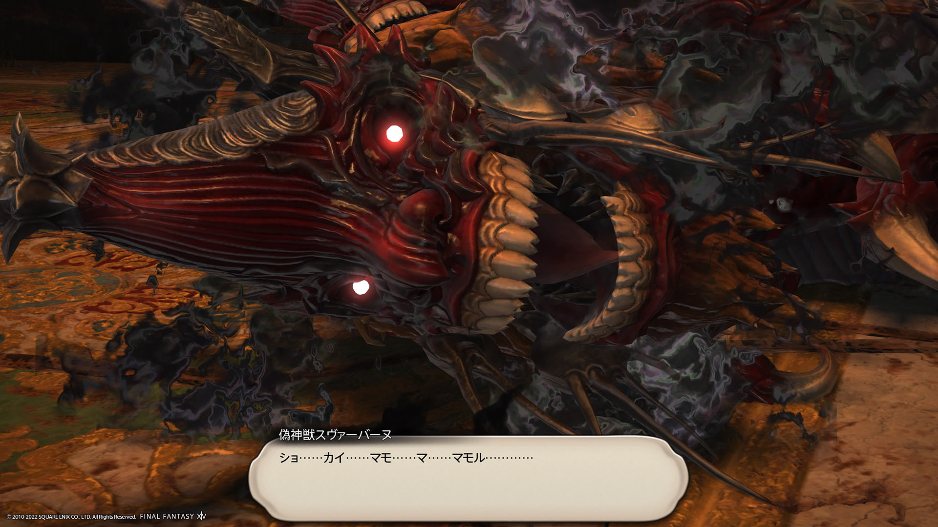 サイモン暁月の成長日記429※本編ネタバレあり サイモン成長日記シリーズ 2022年10月11日 寒い!なんか急に寒くなりましたね! 寒いのは苦手なんだが、さつまいもとか鍋とか美味しいものも増えるので悩ましい。 あれだな、焚火で美味い芋焼きたいよね! だからと言って空は燃えなくて良いんですけどね! ふ~む、空が燃えるとはどういうことなんでしょうな。 わ~!お外が真っ赤よお母さん! すご~い!流れ星まで降ってる~! これが世紀末?しゅご~い… なんかそれっぽいの来ましたね。 いちをさらっとは聞いたけど、なんのことやらパッパラパーですので。 そもそも昨夜来訪者多すぎて寝不足なんで。 なんだが怪談でも聞かされてる心地。 そう…それは、人だったのです!!<〇><〇>カッ!! みたいな。 ミッションとターゲットネームは大事だよな! そんなしょーもないことに関心するサイモンであった。 あ、そういえばそうだな。 流石に自宅待機、ヴリソックはしてないと思うが。 わ~、身軽~。 それフラグですやん…。 あとヴリちゃんのフラグ回収もね! 確かに密林だもんな、偽神獣以外の生き物もいるよな。 おんもにはモンスターしかいないって思い込んでたわ、ありがとう。 もちろんサイモンもバッチリだぞ! でもその前にちょっと採取しますね。 これぞ世紀末、いや終末園芸!! そうだね、なんでだろうね。 古代人≠獣=人 実に面白い! スパゲティみたいな名前だな。 はーい、ヴリちゃん入口で確保ー!! アヒワーンさん、やっぱりダメだったようです。 キモ クラゲみたいのがいっぱい飛んでる。 塩辛に見えなくもなかったわ、ごめん。 でこいつがラザハンで目撃された奴だな。 中身は何かはだいたい察してますが、てかこれアーモロートにいたね。 ということは予習済みなわけで余裕だな! (同じ動きするとは限りませんが) え、ヤシュトラママさらに眼の具合悪くなってんの? 謎々ですか? やだー!なにそれ恐ーい! てか聞いてる感じだとそれ、星海に還れないんじゃないです? つまりアリゼーちゃんの豚も使えんのか。 ふーむ、困りましたねえ。 まあでも考えようによっては、とある宗教では解脱・涅槃という輪廻から外れることが 幸福と考えることもあるようですし。 結果オーライなのか? みんなでニルヴァーナしちゃう? あ、ヴリちゃんおかえり。 まあそう落ち込むなよ。 ギミックの判断ミスなんて珍しいことじゃないから。 アヒワーンも合流か、おつかれ。 言ってた通りヴリちゃん入口でオロオロしてたよ。 ぼくもそう思うにゃわん! なんでだよ!? いやいや、ラザハンに限ってそれはないと思うが。 なんなら「太守は七大天竜だー!カツル」ってテンションあがるだろ。 ヴリちゃんがそう言うならまあ、仕方がない。 でもこの状況だと遅かれ早かれ絶対バラすことになると思いますよ? え?ズルくない? サイモンもいちを竜騎士なんですけどねえ? ミドじいに乗ってる奴が言うなってか? いやでもあれ幻体じゃないですか、ノーカンだろ! 生ものでお願いしたい。 ズルイ… あとで(公開)イタ電してやる。 仕方がない、まあがんばってきなよ。 この間こき使っても良いって言ってたしな! (`・ω・´)キリッ! さて街は今頃どうなってんでしょうね。 PR