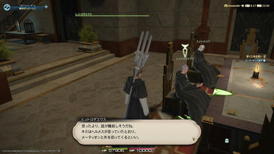 サイモン暁月の成長日記439※本編ネタバレあり サイモン成長日記シリーズ 2023年02月14日 おひさー! この頃は某魔法学校に入学しているサイモンです! それ以前は、放置してたサブキャラで。 コンサポ使って蒼天編を遊んでたのですが、いや~めっちゃいいですね! メインシナリオへの没入感がより深まってましたし、心のダメージも深まりましたね!! やはりイシュガルドは特別なところだと再確認しましたよ。 あ!そうそう!イシュガルドで思い出しましたが。 サイモン、ついにエンピに個人宅を購入することが出来ました!! イシュガルド編が実装されてからずっと、 ここに家が欲しくてコツコツギルを貯めた夢が叶いました! 今はまだどうしようか少しづつ弄ってるので全然完成はしてないのですが、 試行錯誤してる様は機会があればお見せしますねー! そもそもどういう内装にしようかイメージがぽやぽや過ぎて困るんだよな、 とりあえず置いてみたい家具を用意しては除外する、そんなことの繰り返し…。 一先ず形が出来た地下できゃぴきゃぴしてた様子でも置いとくね! そうだった! 丁度今建物内にいるし内装をジロジロ見て参考にするか。 殺風景~…。 どうやらそうみたいですね。 あ、ヘルメスが来るまでちょっと家具見ててもよござんすか? なんだと!? まあ、普通そうですよね。 こちらとしては家具が見れたら…ンンッ! いやしかしどこに大事な情報が隠れてるか解りませんからね! クッ!こいつ!!w 腹立つ顔ばっかしやがって!!www 若エメは意地悪だなー!そんなんじゃお友達…お友…(お隣を)チラッ…。 まあ、若エメも変わり者なんだろうな、類友っていうし! だがしかしここは譲ーれーないー!未来をー目指してー! イヤ!!(ちいかわ風に) ……!! 何故だ!若エメはちいかわがお好きでない!? まあそんなサイモンも好きでも嫌いでもないっていう。 サイモンはカピバラさんのほうがも~っと好きです! やーいやーい! ヘルメス本人からOK貰ったもんねー! そうさ、大事なペットから信頼を得られれば、 飼い主とも仲良くなりやすいのだよ!見たか! ただし例外もある! もはやその言い方ペットに対する言い方…。 そうか、そうだったね…。 今はサイモンはお二人のペッツでしたね。 若エメにしたらペッツ同士が仲良しなだけにしか見えんのだろうな。 解りましたよ、お利口にしてますね、たぶん。 いちいち腹立つ顔すんなよw というかこれはあれか、顔のパーツのせいで嫌味に見えてしまう損するタイプか? そうか、ごめんね若エメ。 ああ~、ヘルメスはそこが気になるのね。 古代人では星に還ることは特に抵抗のないものってのは聞いてたな。 いくら巡ると言われても、個の終わりだからこっちの感覚では死ぬって感じなのだが。 ヘルメスみたいに考える古代人もいるのか。 となるとヘルメスってわりと変わり者なのかな? ほうほう、メーティオンもそれを「死ぬ」って認識なんだな。 これはヘルメスの影響なのか、そう自分で学習したのかどっち? やっぱりこの考え方する人はあんまり居ないのか、ヒュトロが驚くくらいだしな。 エルピスではって言うくらいだから、どこ行っても普通はそう考えるものなのだろう。 ヘルメスだけがそう感じてるんだろうね。 そらモヤモヤするわ「あとは任せるから自分死ぬね!」って言われたら。 てか死ぬって言葉も滅多にないのか~、まあ丈夫ってエメおじも言ってたしな。 死というものが遠いんだな。 (種のサイクルはどうすんだ?だいたいそういう長寿系の生命は衰退していくもんだが) まあ物理的に滅びましたけどね! 地球のためであって、自分のために生きてないんだね。 自分がこうしたいからっていうのでなくて、 地球に役立つからこうしたいっていう根底の考えの違い。 普通に会話してたけどこういうとこが微妙に噛み合わないから、 「同じ考えの人」とうっかりしてしまうな。 まさに神々の世界創造ですなー! 次元が違いますわ…。 そら世界創造してる奴らと思考が一致するはずがない。 まさにヘブン状態ですな。 そら最高の気分で死ねるな。 でもそれってやっぱり死の痛みや恐怖みたいのがないからなのかな~。 あと死の先を信じてるところとか? 無でなく巡るっていう。 まあでも現代でもそれに近い思考の方はいるよね! 昨今そういうテーマもありますし! はーーー!命数と同義! 重い!重いよ古代人!! その時は美しいか!そうだね、その次元にいる人ならそう考えるだろうね! 命が軽いんだか重いんだか! ふわっふわやな!!! まさに「死ぬってな~に?♥」を感じさせるスイート。 聞いてるだけなら「うわ~、素敵な考え~」ってなるが、 素面になると「ん?」ってなるな。 でもごく一部例外あるのか、そっちの方が気になるな。 命を知ってるのに終わりを選ぶかあ。 構造を知ってるだけで、理屈じゃないとこを理解してないのでは? 知らんけど。 なんかもう高尚な話なもんだから、 国語能力低いサイモンにはこれをまとめて表現する言葉がないんですが!!? なんかあれか?「虚しい」のか??? 